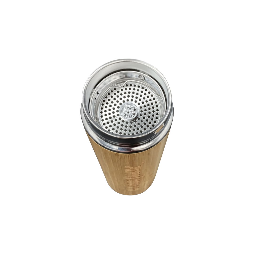 Each Bamboo Flask includes a removable infuser basket, allowing users to brew herbal teas, detox water, or infused drinks directly inside the bottle — making it a versatile choice for health-focused individuals and frequent travelers alike. The combination of bamboo’s natural texture and stainless steel’s durability creates a premium finish that feels both organic and sophisticated.