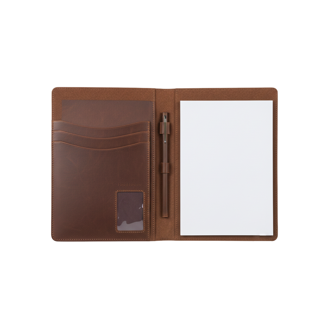 Each piece reflects an artisanal balance between functionality and timeless design. The hand-stitched leather exterior exudes sophistication, while the carefully planned interior can include document sleeves, card slots, writing pads, or branded inserts — all designed around your exact corporate requirements.