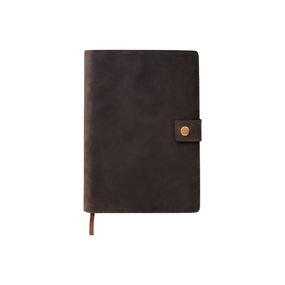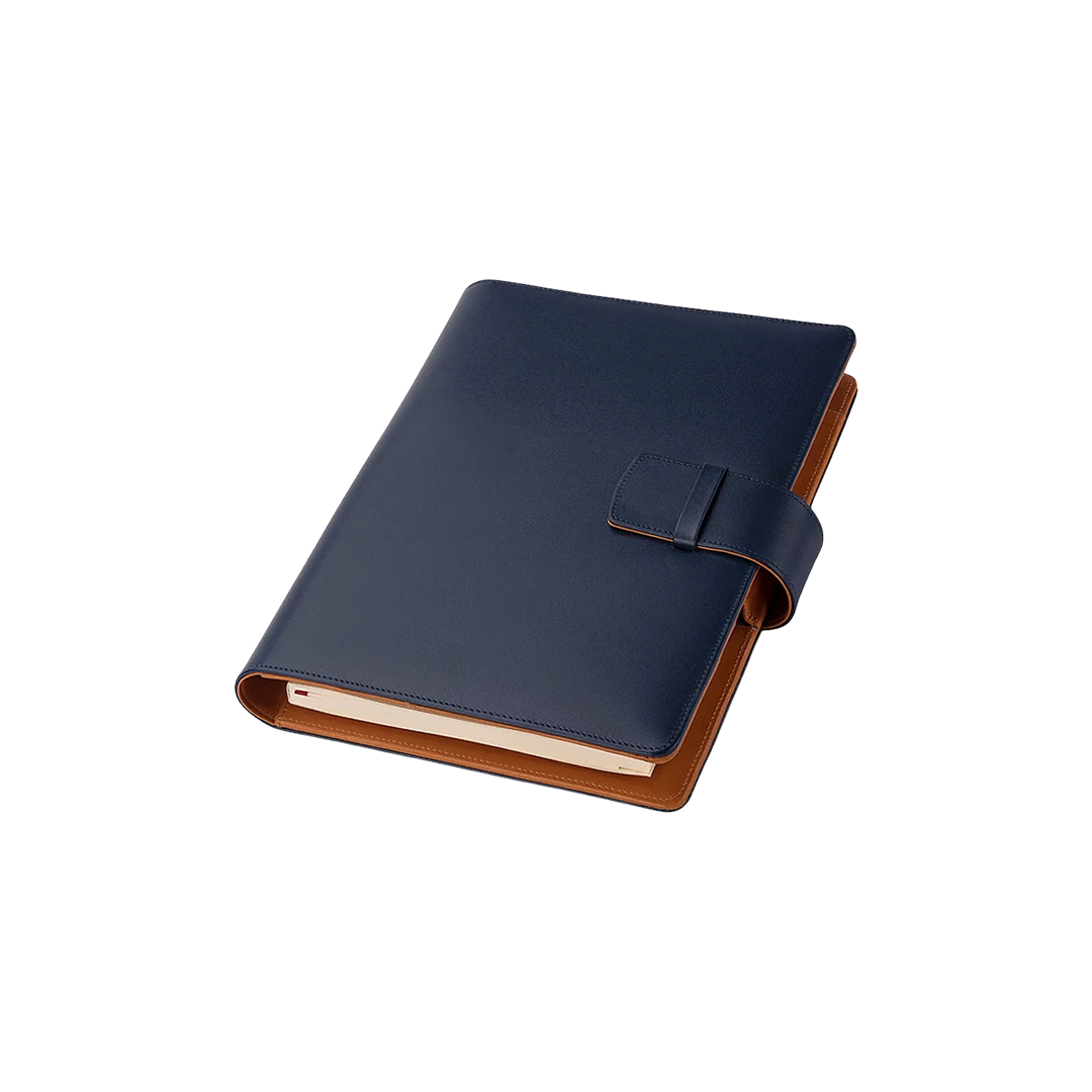Available in sophisticated shades like deep navy and classic dark brown, this notebook cover combines the timeless appeal of fine leather with practical corporate functionality. It offers protection and organization for your most important documents and writing pads, ensuring immediate preparedness.