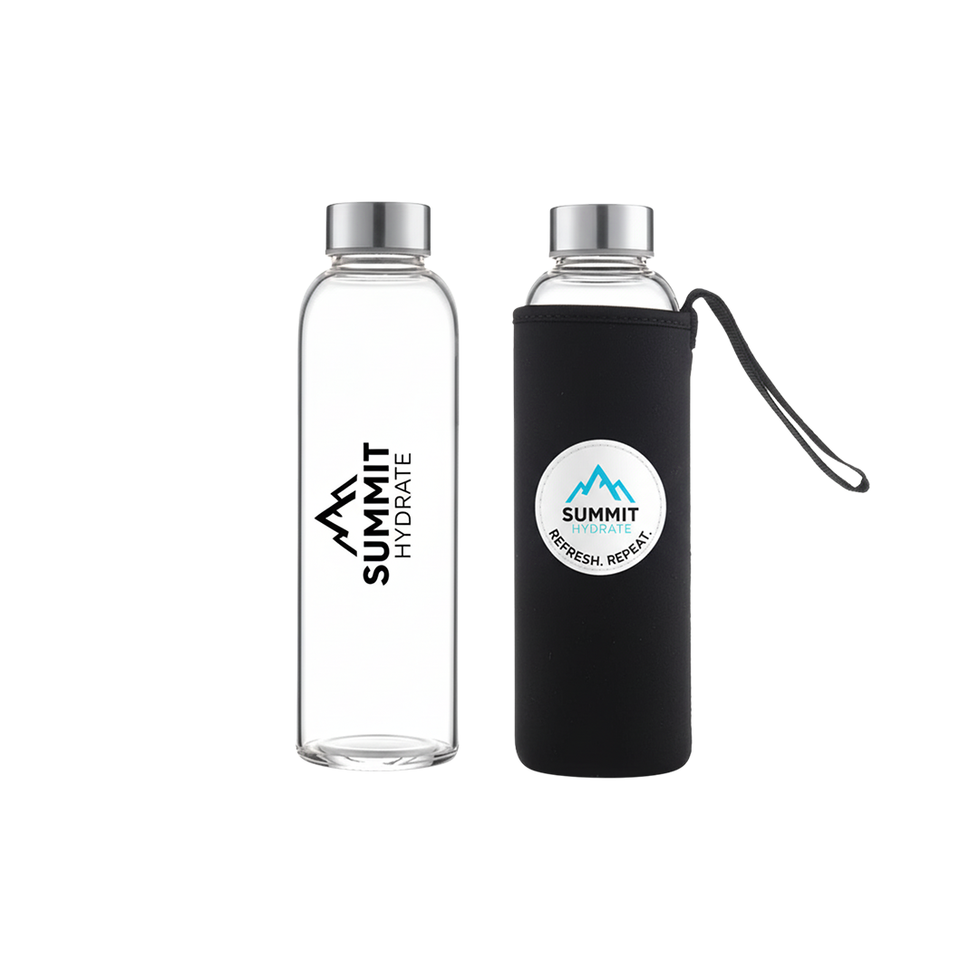 We import and supply high-quality glass bottles that are stylish, durable, and practical—making them one of the most popular choices for corporate gifting, promotional campaigns, and publicity merchandise. To meet the varied needs of our clients, we usually keep three types readily available in stock: the 500 ml bottle with small cap and pouch, the 500 ml bottle with big cap and pouch, and the 750 ml bottle with a convenient travelling pouch. Each option is designed for everyday usability while maintaining a sleek, professional look.