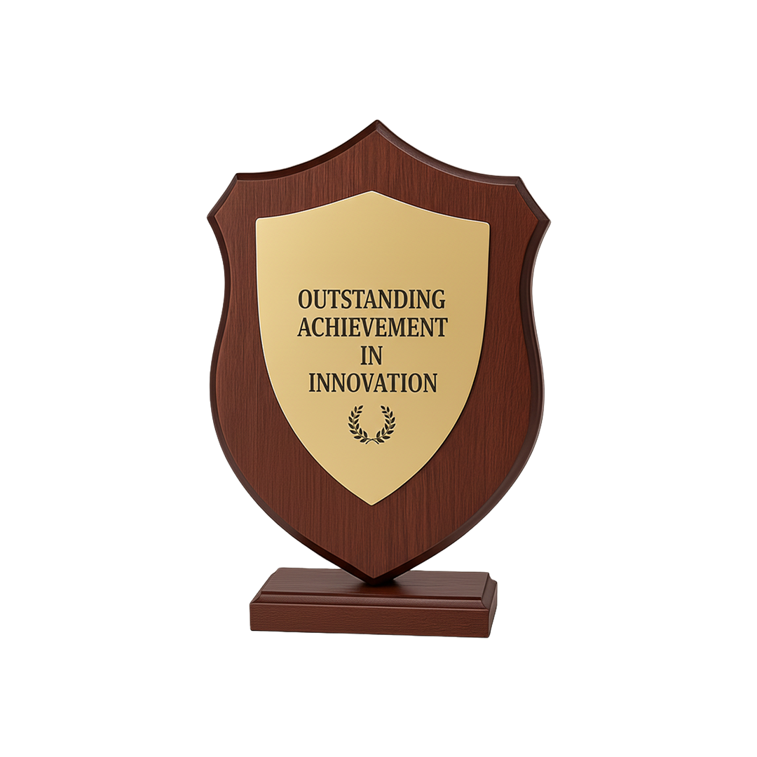 With a minimum order of 100 pieces, every award is produced with precision — sanded, polished, and inspected to meet export-grade standards. From traditional shield shapes to contemporary rectangular plaques, this collection combines heritage with modern presentation.
