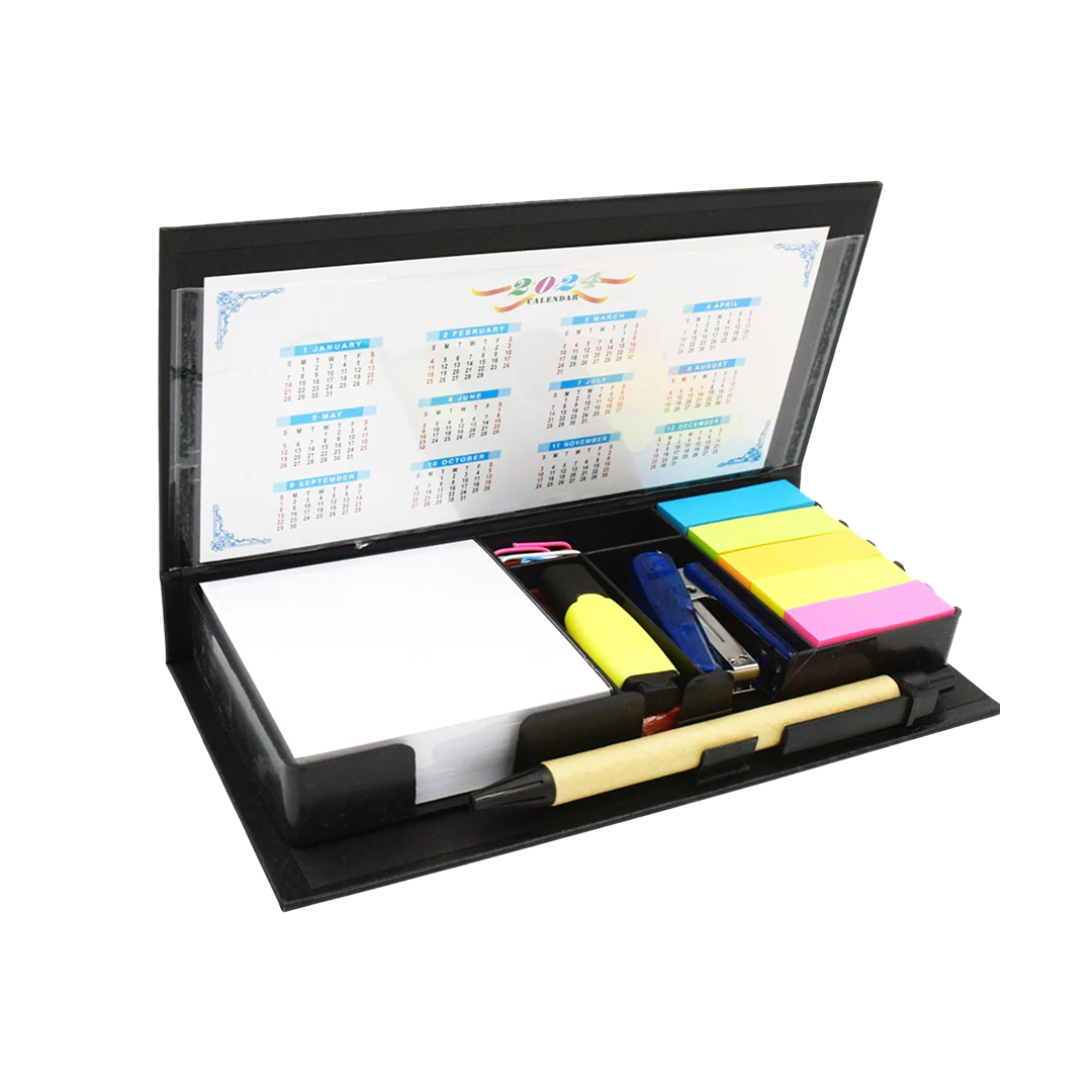 Yearly Calendar on flap, Sticky notes, notepad. Branding with DTF & GL printing can be done.