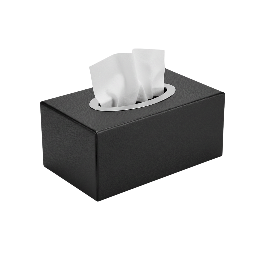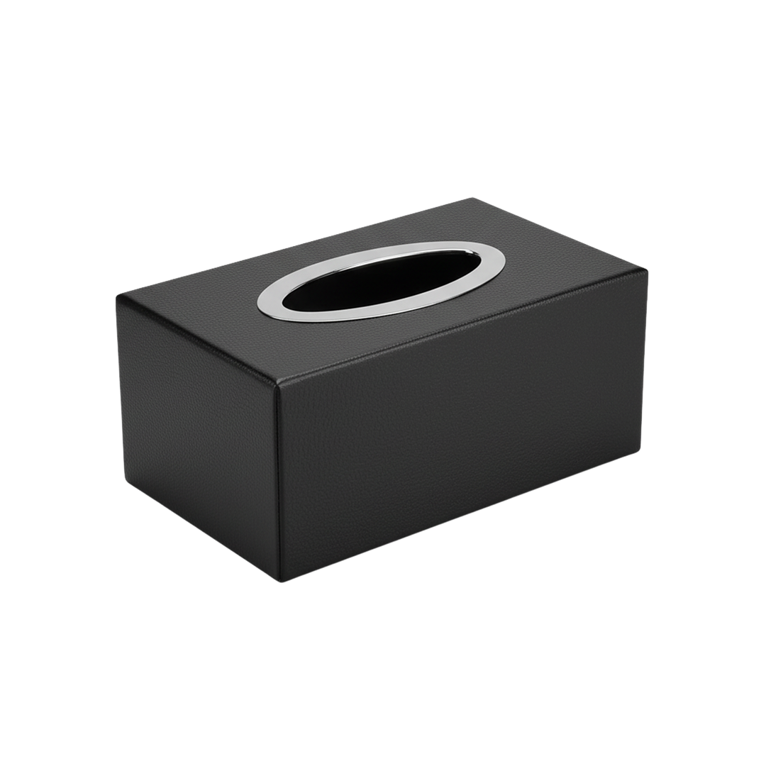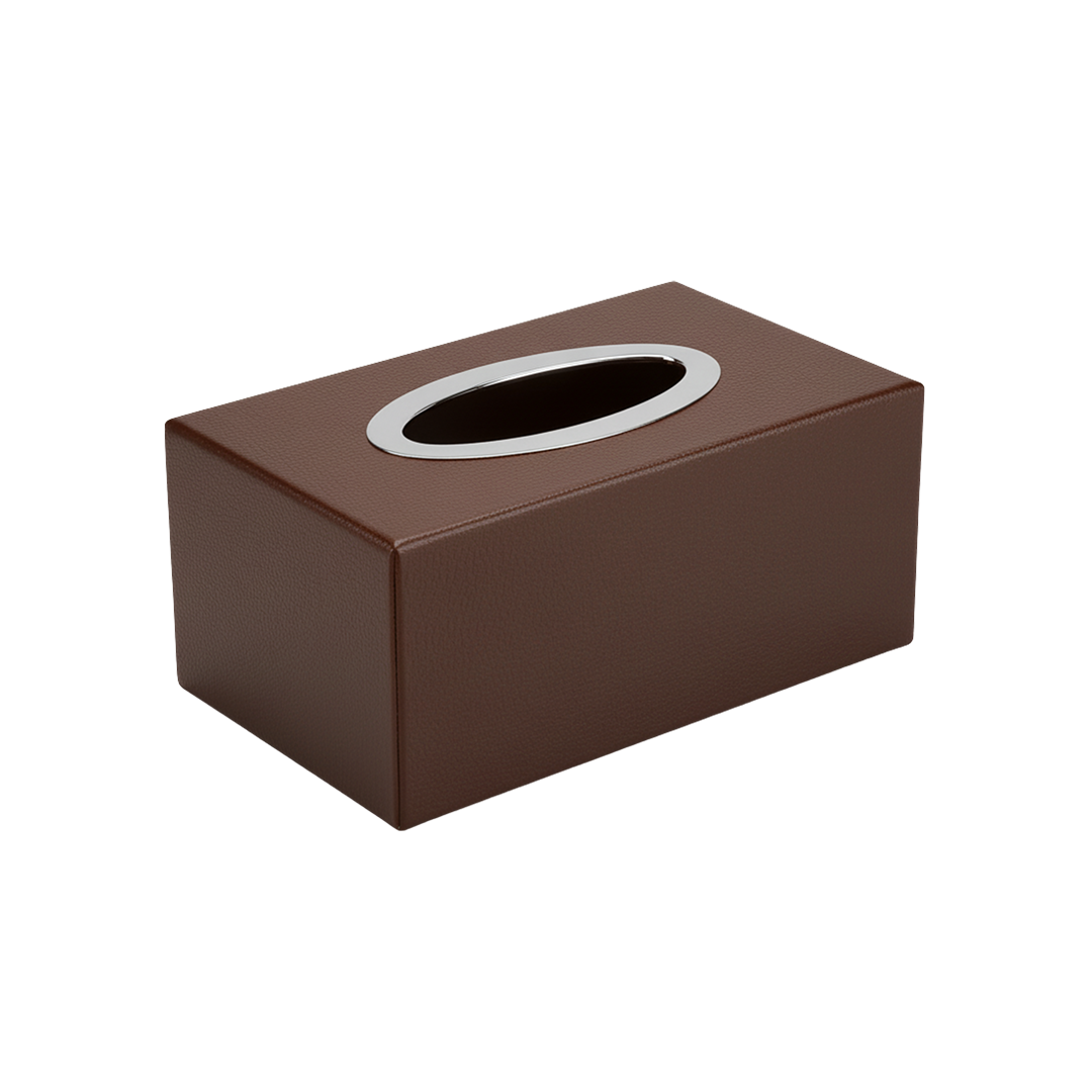The Rexine Tissue Box with Steel Rim is a sleek blend of modern design and traditional durability. Crafted by SAIF UL BURHAN INTL, it features a curved Rexine body mounted on a Lasani wood base and finished with a steel rim on the top for an ultra-modern aesthetic.