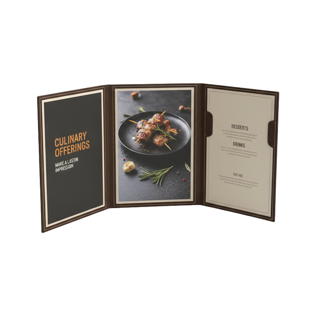 The clean-lined design and sturdy construction make it ideal for fine dining establishments, hotels, and event venues. Each holder can be customized with your restaurant logo through laser engraving or gold stamping, transforming your menus into an expression of your brand’s quality and aesthetic.