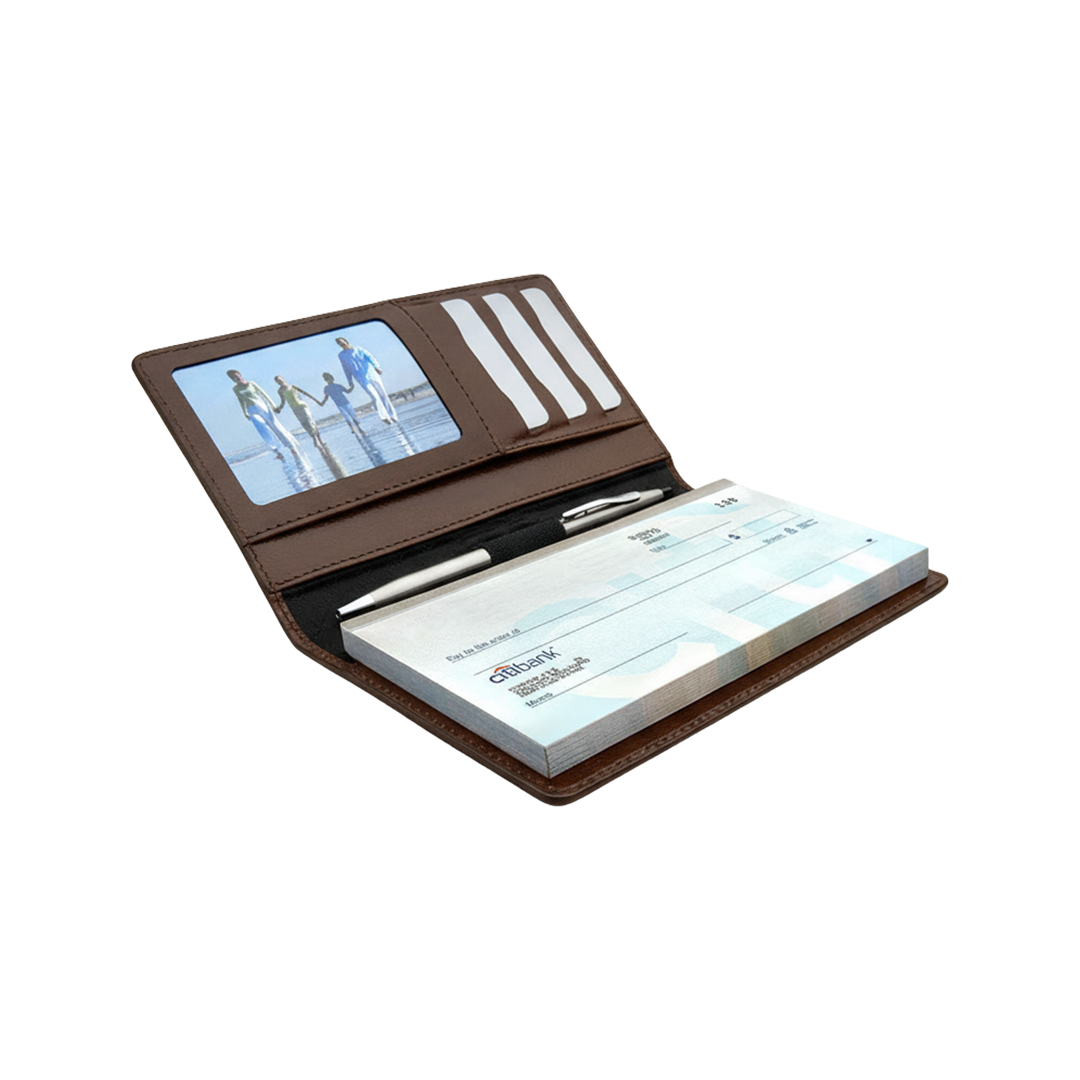 Constructed from premium artificial or genuine leather, it offers a structured design with internal sleeves for cheque books, cards, and currency notes, keeping everything neatly arranged. The soft-grain texture and contrast stitching reflect meticulous craftsmanship, while the inner compartments are reinforced for long-term use.