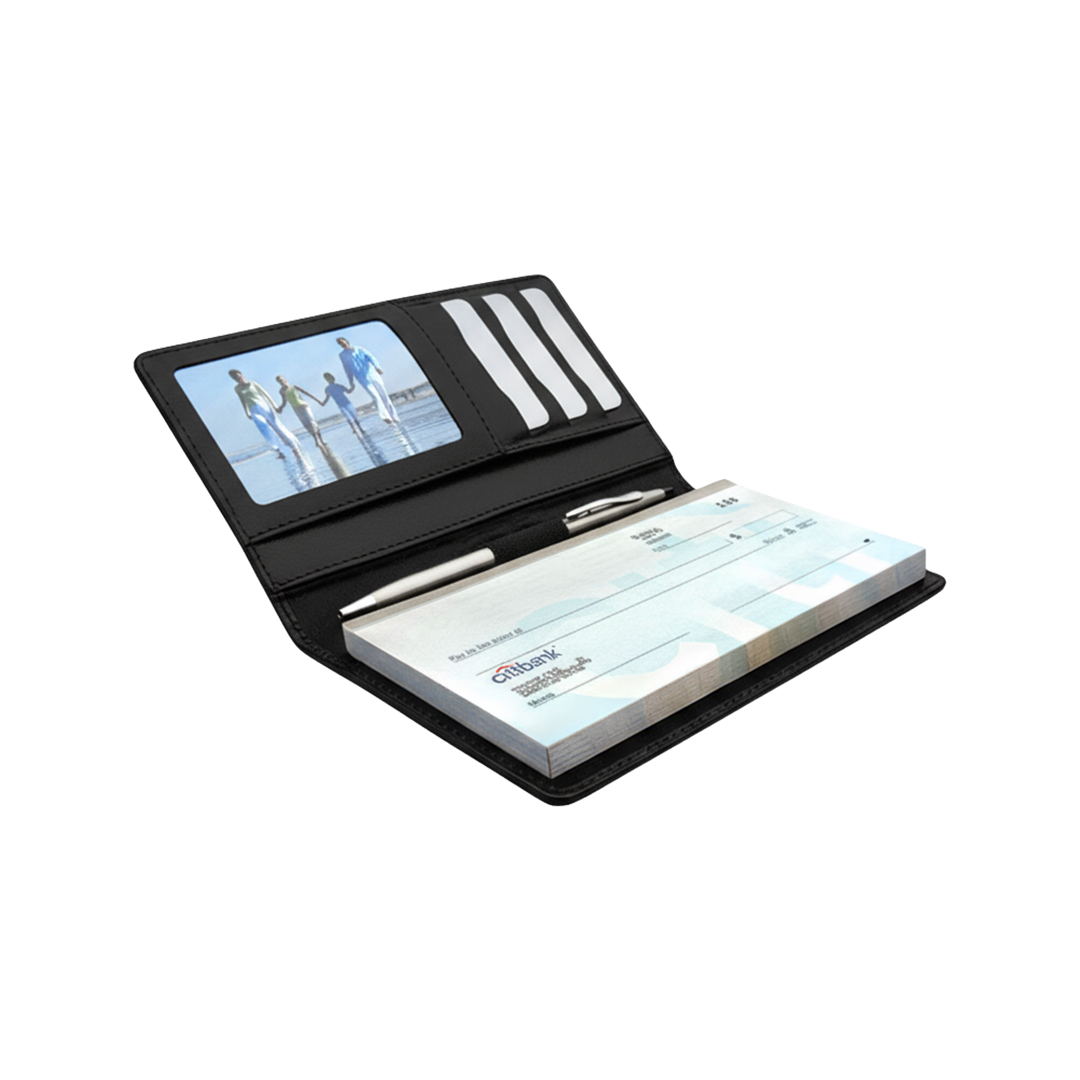 The Signature Case by SAIF UL BURHAN INTL combines simplicity with refined elegance. This cheque book holder with pen loop is crafted to safeguard your financial essentials while maintaining an air of corporate professionalism.